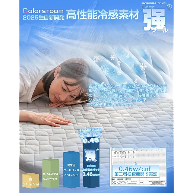 【商品仕様】サイズ:160×200cm(クイーン) 表地:ナイロン75% ポリエステル25% 中綿:ポリエステル100% 裏地:ポリエステル100% 冷感素材の特性上、室温が高い場合は生地と体温との差が少なくなってしまうため、冷たく感じにくいです。商品企画:日本 商品製造:中国