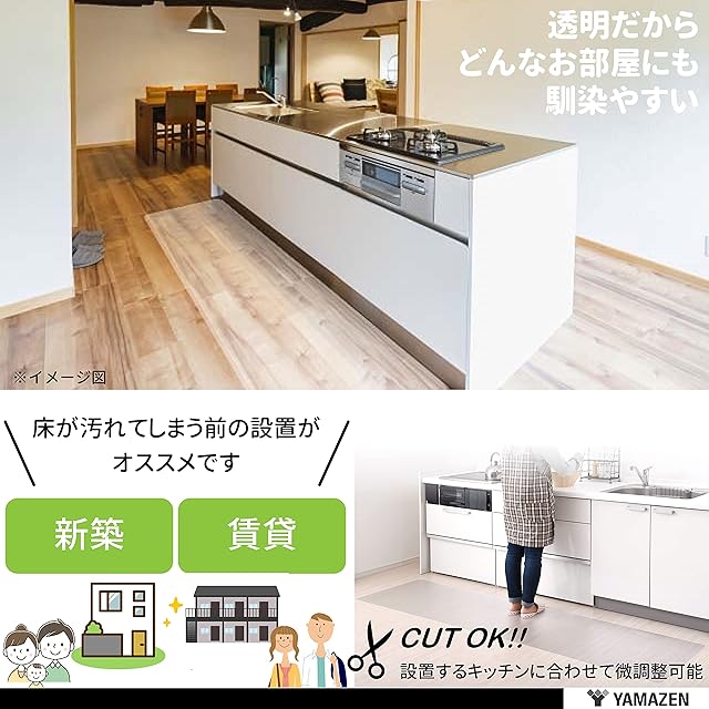 山善(YAMAZEN) キッチンマット 透明 クリア 拭ける 傷防止 シート 60×120cm 1.5mm厚 (はさみでカットできる/床暖房対応) 床保護 クリアマット 透明マット 床 台所 CFM-1260