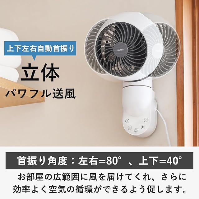 [山善] 壁掛式 サーキュレーター 静音 10畳 上下左右自動首振り タイマー付き 風量3段階調節 リモコン付き お手入れ簡単 ホワイトグレー YAR-FVK154(WH)