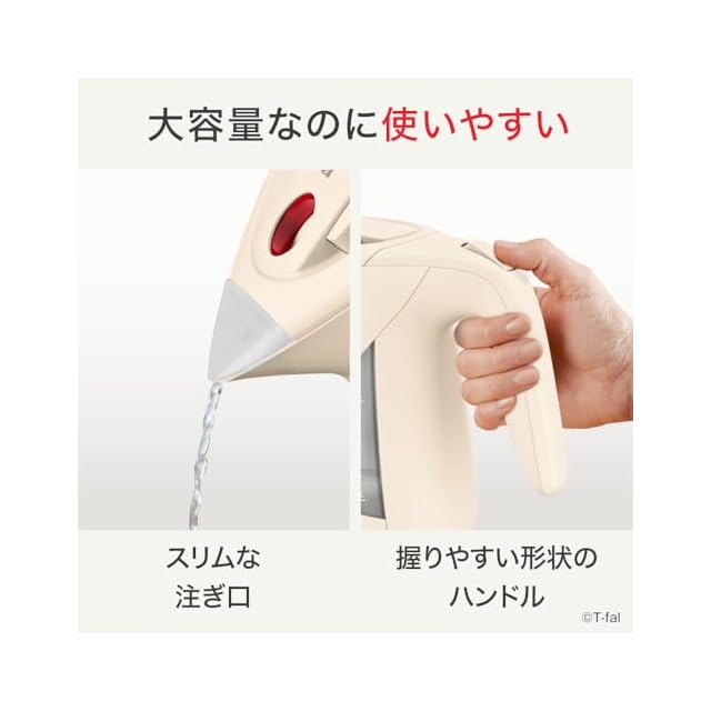 ティファール 電気ケトル 1.2L 大容量 転倒お湯もれロック 「ジャスティン ロック アイボリー」 省スチーム設計 KO590AJP
