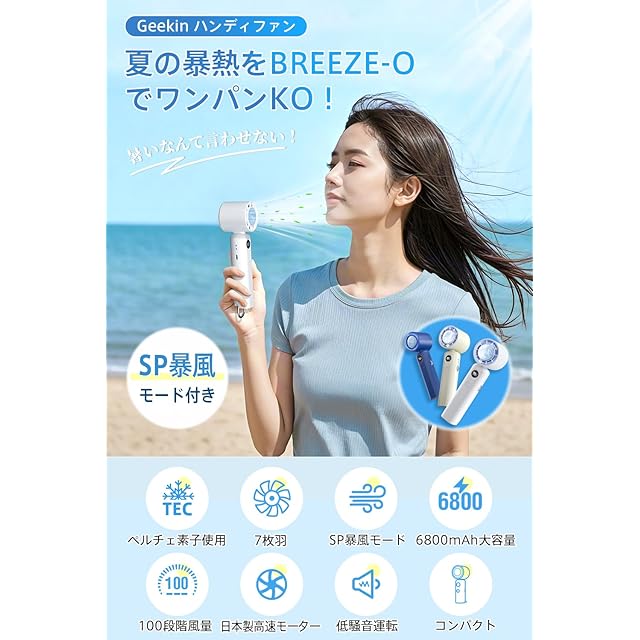 【SP暴風モード搭載・ 超静音送風】 独自開発のSP暴風モードを搭載。毎分32,000回転の驚異的な回転数で22m/sの暴風級気流を生成し、灼熱の暑さを一瞬で撃退。日本製超高精度モーターと7枚羽を採用、小型扇風機でも強い風量と卓越した静音性を両立でき、快適な涼しさの中での静寂な時間を提供します。革新的な100段階無段階調節システムを採用し、精密ローラー操作により、5m/sの優しい微風から22m/sの強力な暴風まで、指先ひとつでシームレスに調整可能。オフィスでの休憩からアウトドアアクティビティまで、あらゆるシーンで大活躍の暑さ対策グッズ。