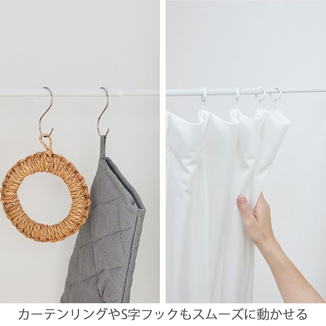 カーテンや目隠し布を掛けたり、部屋干しやクローゼットの収納追加など幅広い用途に使用可能。