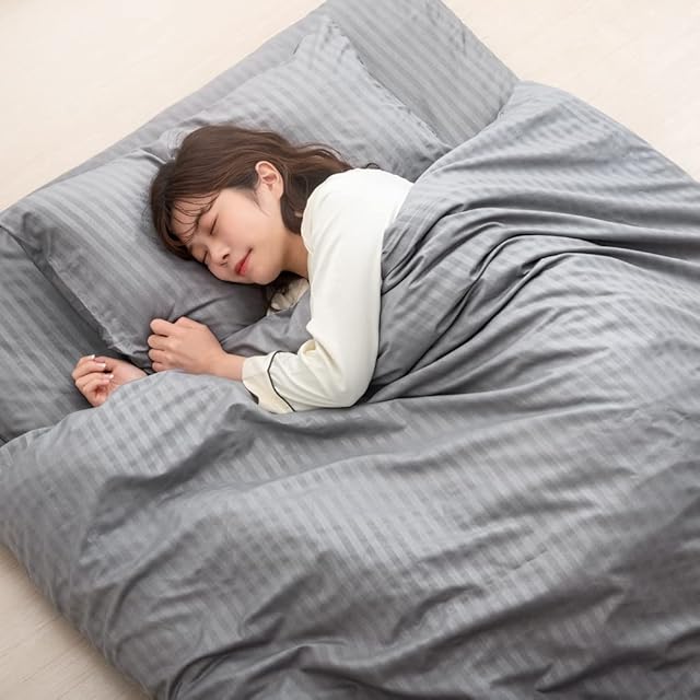 【掛け布団】 サイズ:幅170×長さ210cm 側生地:ポリエステル100%(ピーチスキン加工) 詰め物:ポリエステル綿100% 詰め物重量:1.8kg カバー用ループ数:6カ所【敷き布団】サイズ:幅120×長さ200cm 側生地:ポリエステル100%(ピーチスキン加工) 巻き綿:ポリエステル100% 固綿:ポリエステル100% 詰め物重量:約3.6kg