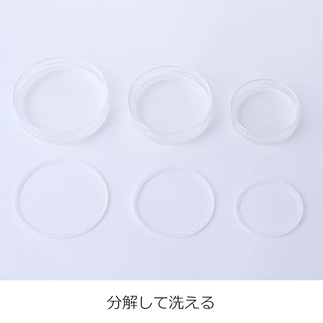 材質:本体/ソーダライムガラス フタ/PMMA=メタクリル樹脂(アクリル樹脂) パッキン/PE=ポリエチレン