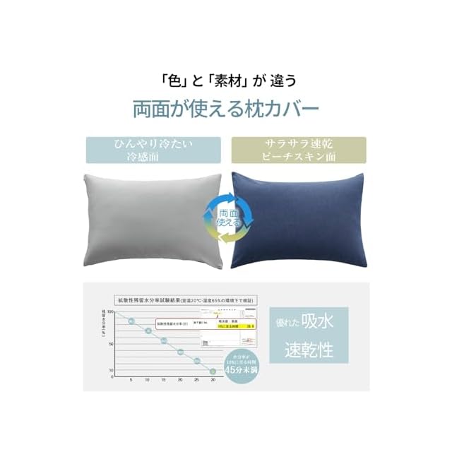 【制菌薬剤不使用!光のチカラで除菌&消臭】表地に光(太陽光や電灯の光)によって、菌やアレルゲン・臭い・ウイルスなど有害物質の吸着・分解・除去効果を発揮する光触媒加工を施しています。抗菌防臭よりも除菌消臭効果を期待できます!通常の抗菌加工では消臭剤などが頻繁に使用されておりますが、W極冷感まくらカバーは光触媒技術で、ひかりの力で効果を発揮しますので、お子様やペットがいるご家庭でも安心にお使いいただけます。また弊社の光触媒の特徴は、粉状二酸化チタンを使用せず、薄膜の光触媒を生成するところにあります。市販の粉状二酸化チタンなら繊維に練り込んだりしても空気や水の勢いに流されてしまいます。膜状に生成する技術を採用することで、1000回使っても効果が続きます。