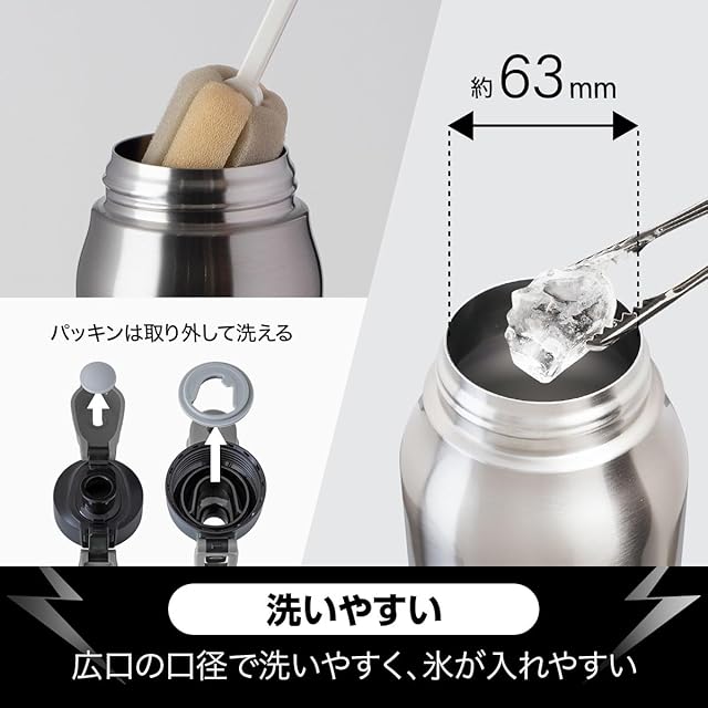 真空二重構造で熱が伝わりにくく、冷たさを保ちます。フタをあけてそのまま飲める直飲みタイプ。保冷専用。
