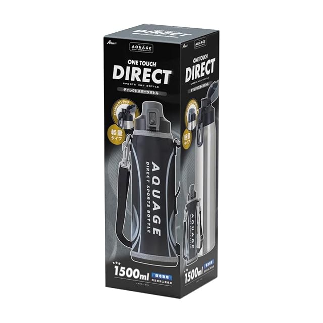 アトラス 水筒 1.5リットル 子供 小学生 直飲み カバー付き 紐付き 直飲み 子ども 保冷専用 ステンレス 真空断熱 軽量 ワンタッチ 洗いやすい AQUAGE アクアージュ ADBT-1501