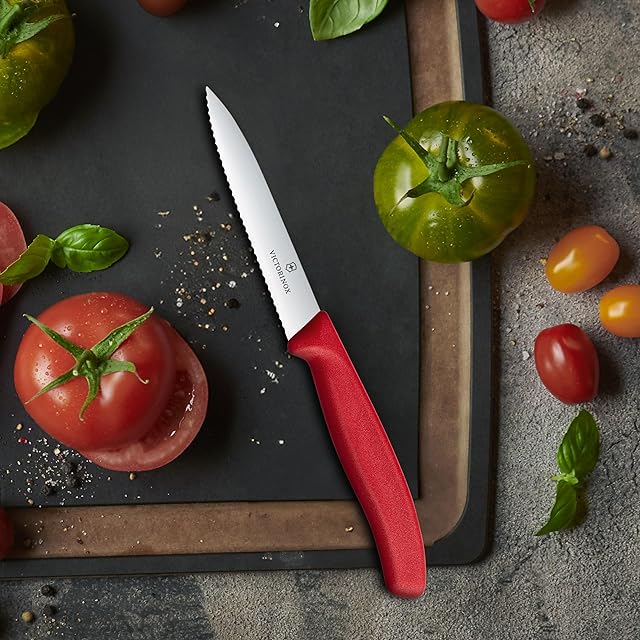 VICTORINOX(ビクトリノックス) ペティナイフ 切れ味の パーリングナイフ 10cm 波刃 レッド 完熟のフルーツやパンもつぶさず切れる 果物 食洗器対応 スイスクラシック 6.7731-X1