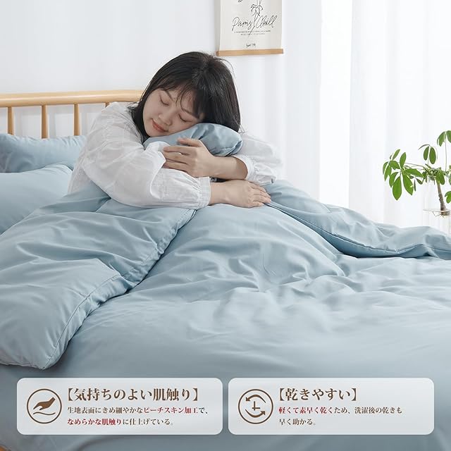 【.co.jp 限定】クモリ(Kumori) 寝具カバーセット 布団カバーセット 布団カバー シーツ 洋式ベッド・和式布団兼用 掛け布団カバー ボックスシーツ 枕カバー 洗い替え速乾タイプ ピーチスキン加工 ダブル・4点セット ブルー