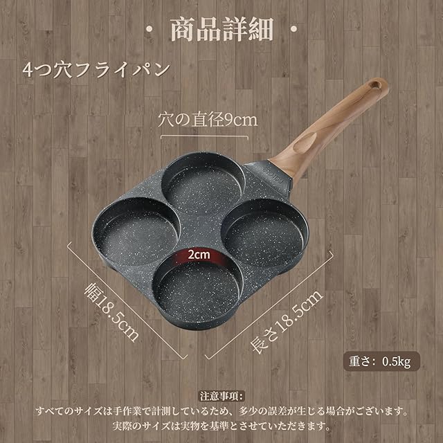 CAROTE カローテ 目玉焼きフライパン 仕切り ガス火・IH対応 PFOA PFOS フリー 4つ穴円形フライパン マルチパン 朝食パン こびり付かない 洗いやすい 大判焼き器 お弁当 今川焼き パンケーキ 焼きおにぎり ブラック 一年補償 Cosy Black シリーズ