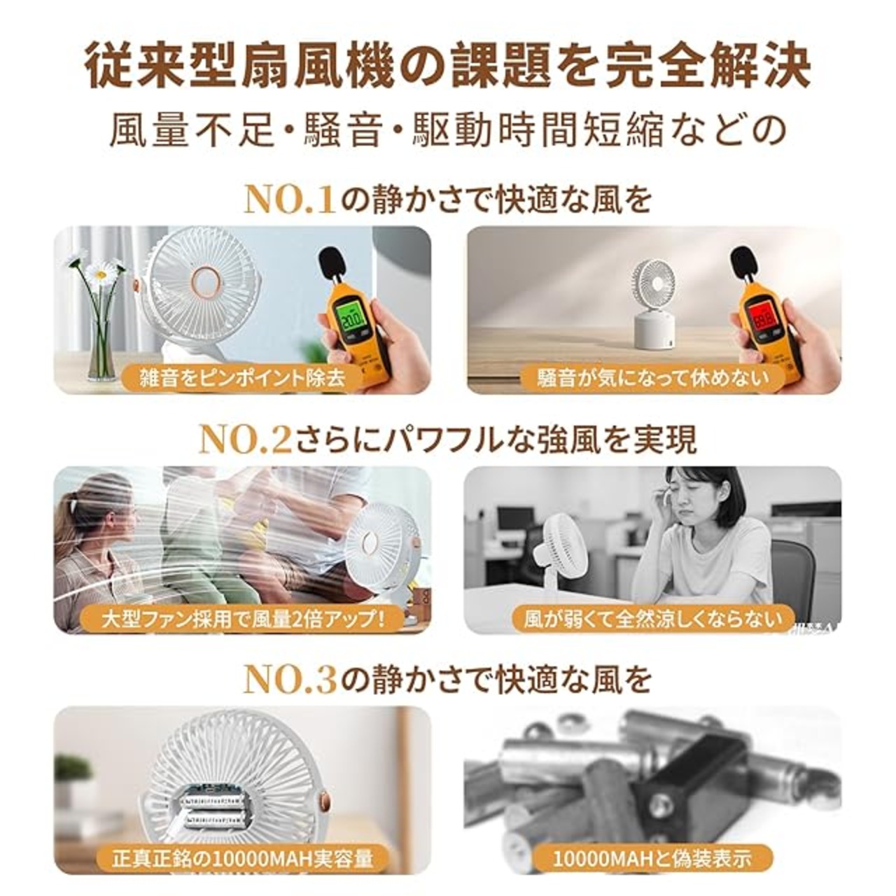 【パッケージ内容/1年間安心】パッケージ内容物:卓上扇風機本体*1,USB充電ケーブル*1,取扱説明書*1。弊店の商品に問題がございましたら、お気軽にお問い合わせください。店が責任をもって交換、返品対応をさせて頂きます。ご不明点がございましたら、遠慮なくご連絡してください。 弊店はお客様の考えを最も大切にし、ご満足いただける商品を提供いたします。