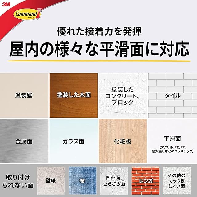 【ペタッとカンタン設置】コマンド タブで貼り付けるだけなので、壁に穴をあける必要がありません。工具を使わずに手軽に取り付けられます。