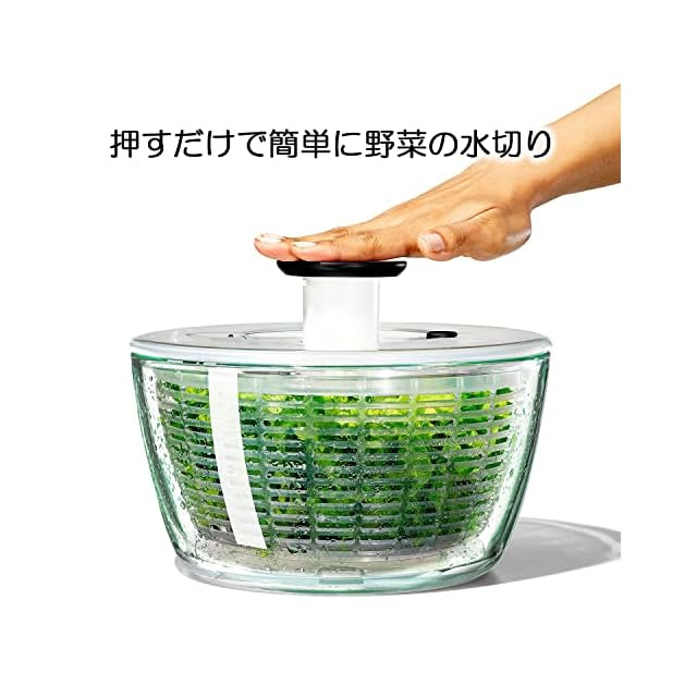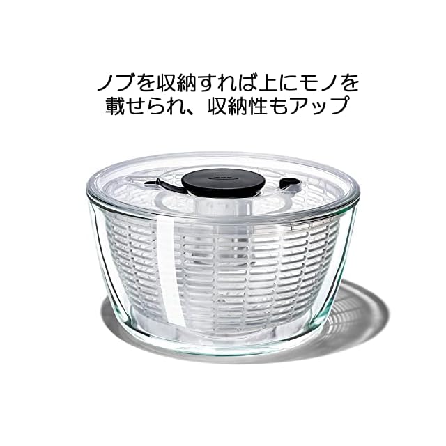 OXO オクソー サラダスピナー 野菜水切り器 ガラス サラダスピナー 4人以上 作り置き 27.3×27.3×16cm 食器洗い乾燥機(低温設定)可