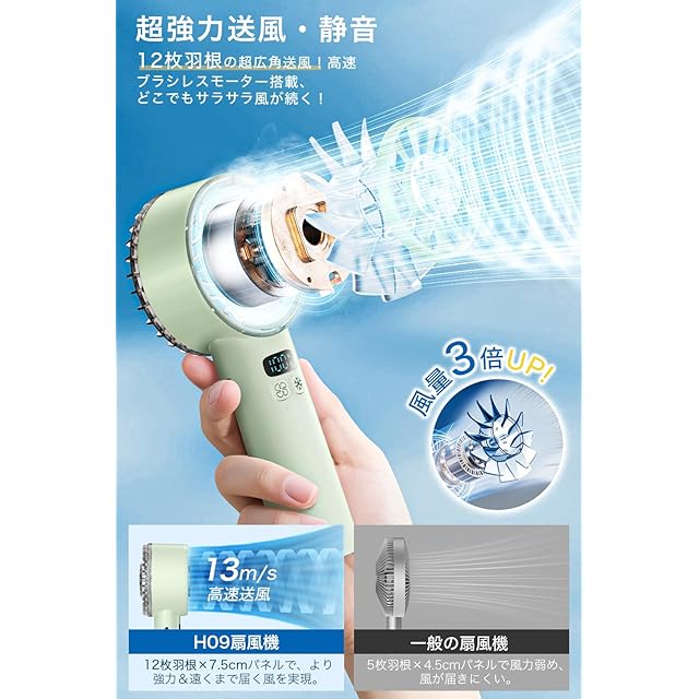 【超軽量&コンパクト|持ち運び便利】わずか約240gの軽量設計&小型ボディで、バッグやリュックにすっぽり収まり、外出先での持ち歩きにも最適なミニハンディファン。パッケージ内容:本体、Type-C充電ケーブル、ストラップ、日本語取扱説明書。万が一不具合が生じた場合は、「出品者に連絡する」ボタンよりご連絡ください。迅速にサポート対応いたします。