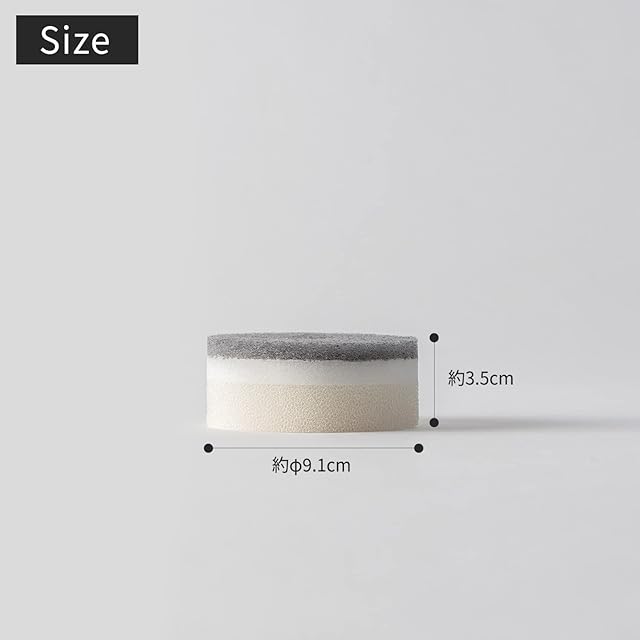 【材質】スポンジ:ポリウレタン 不織布:ナイロン【サイズ】本体:約Φ9.1×3.5cm【耐熱温度】本体:70℃ 【生産国】日本