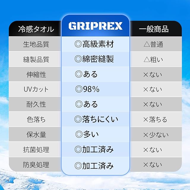 商品名:GRIPREX 冷感タオル 【いつでもひんやり快適・抗菌・防臭の清潔感】4色set 熱中症対策 UVカット