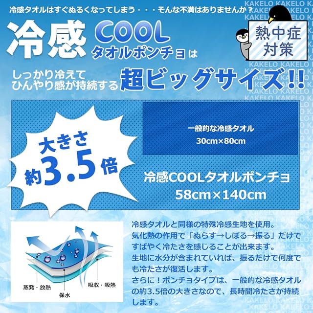 水に濡らして振るだけでひんやり気持ちいい!人気の冷感タオルに「超ビッグサイズ!ポンチョタイプ」が登場しました。