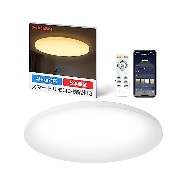 SwitchBot LEDシーリングライトプロ 8畳 スマートリモコン機能付き Alexa 無段階 調光調色 スイッチボット 天井 照明器具 4299lm リモコン付き ハブ機能付き 電球色 昼白色 昼光色 2.4GHzWi-Fi Bluetoothに対応 5年 W2612220