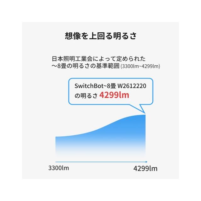 【優れた明るさ & 無段階調光調色】SwitchBot LEDシーリングライト プロのルーメンは日本照明工業会が定める適用畳数の表示基準上限値に達しています。想像を上回る明るさで部屋全体を照らします。アプリで照明の調光調色を1%単位で調整可能。多様なプリセットモードも選択でき、ワンタッチでお好みの照明に切り替えられます。