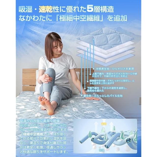 【ひんやりした肌触り】Q-MAX0.46熱伝導性の高い素材を使用することで、触った瞬間ひんやりとした心地よさがあります。冷房や扇風機などを併用すると、さらにひんやりと気持ちよくお使いいただけます。