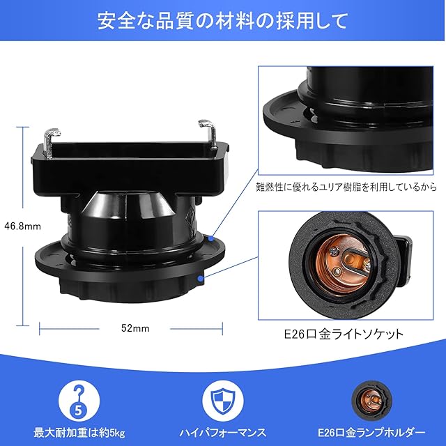 1.引掛けシーリングに取り付け可能なE26口金のソケットです、包装:3個入り、色:黒い、サイズ(CM):高さ4.4×幅2.4×全長5.2、材質:尿素粉末+赤銅、本体重量:40g/1個。
