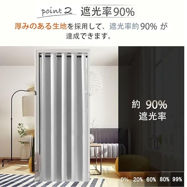 【サイズ】 :幅120cm*丈190cm「幅60cm-80cm範囲の設置場所に適応しております」 【素材】:ポリエステル+プラスチック(ハトメ部分) 伸縮性がある素材を採用し、シワになりにくい。ちょうどいい厚さ自然に垂れ、形状安定効果あり。