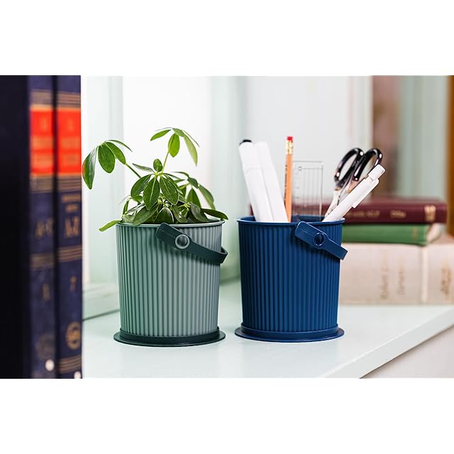 手のひらサイズのフタ付きバケツ。ペン立てや小物入れに。