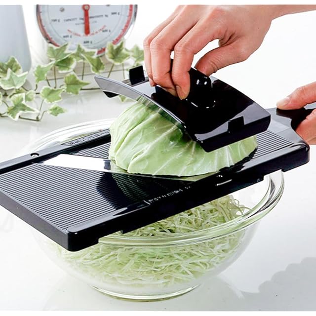 下村企販 [とんかつ屋さん] 時短で極細千切りができる キャベツスライサー ワイド 【日本製】 幅1mmのふわふわ千切り 鋭い切れ味 半玉まるごとスライス ホルダー付き 燕三条 35950