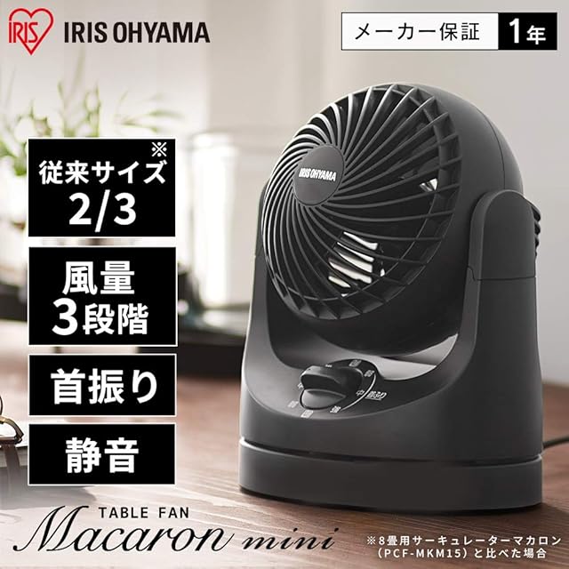 【節電対策】 アイリスオーヤマ(IRIS OHYAMA) 扇風機 卓上 マカロンmini マットデザイン 左右首振り 静音 コンパクト TAF-MKM10-B ブラック