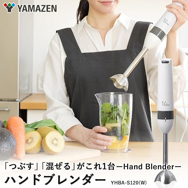 [山善] ハンドブレンダー 電動 ハンドミキサー 離乳食 スムージー 1台2役 (つぶす/混ぜる) ボトル食洗機対応 Votre 軽量 ホワイト YHBA-S120(W)