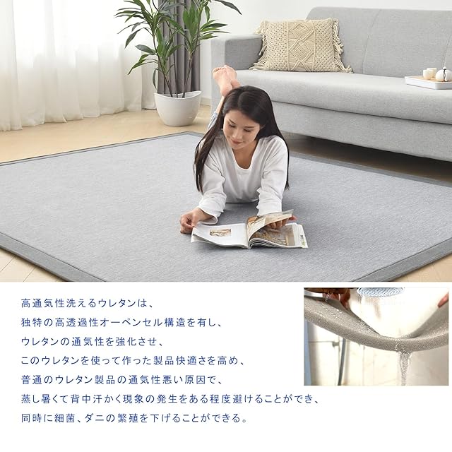 【優れた通気性】厚さ約7mmの夏用カーペット3畳は通気性と抗菌性に優れたポリウレタン素材を使用しており、夏にこの接触冷感ラグを使用しても蒸し暑くてじめじめしていない。夏の間ずっとさわやかな安らぎをお届けします