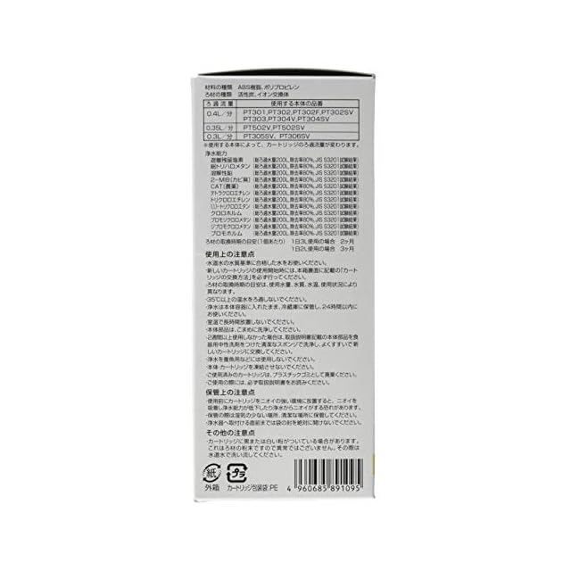 ろ材交換時期の目安(1個あたり):200L(1日3L使用の場合2ヶ月、1日2L使用の場合3ヶ月)