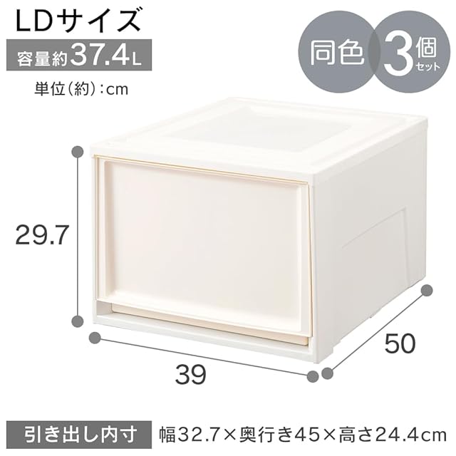【3個セット】アイリスオーヤマ 収納ケース 引き出し クローゼット 圧倒的高コスパ 幅39×奥行50×高さ29.7cm ウォークインクローゼット 衣装ケース チェスト 日本製 ホワイト/クリア BC-LD