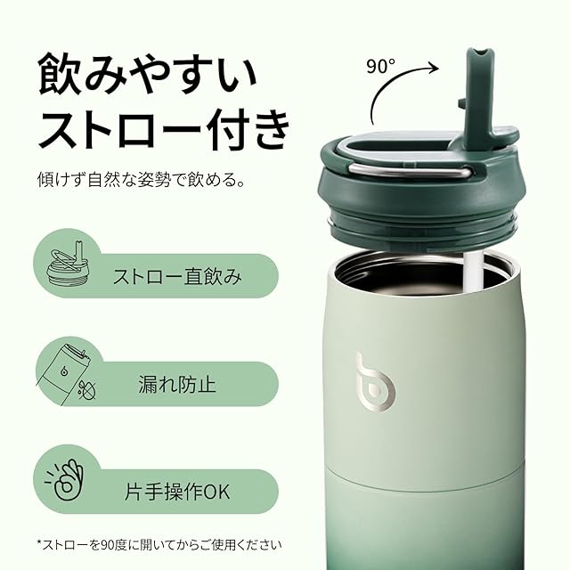材質のメリット: 口に当てても構わないステンレススチールで作る直飲み水筒です。本来の味を安心にエンジョイできます。フタの部品は丈夫で、使用で変形することがありません。
