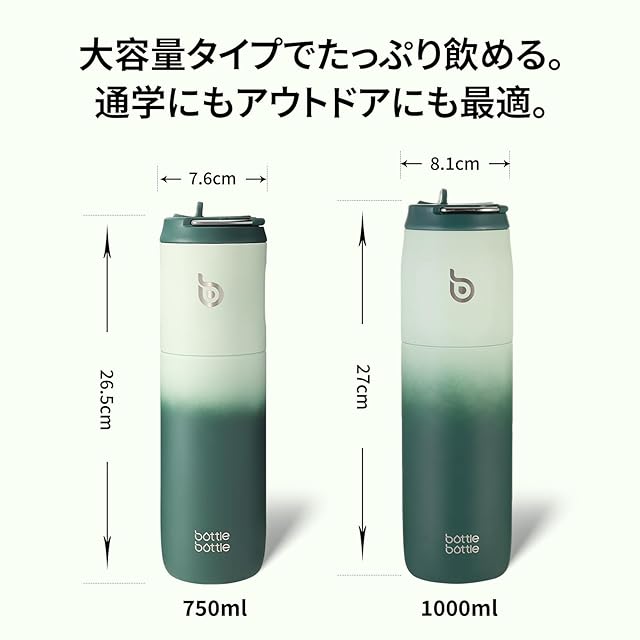 BOTTLE BOTTLE 水筒 1リットル 子供 直飲み 保温保冷 真空断熱 ボトル ステンレス ウォーターボトル 持ち運び グリーン