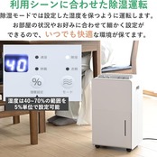 【除湿モード】40~70%の範囲を5%単位で設定した湿度を保つように運転する除湿モード。お部屋の状況やお好みに合わせて細かく設定ができるので、いつでも快適な環境が保てます。