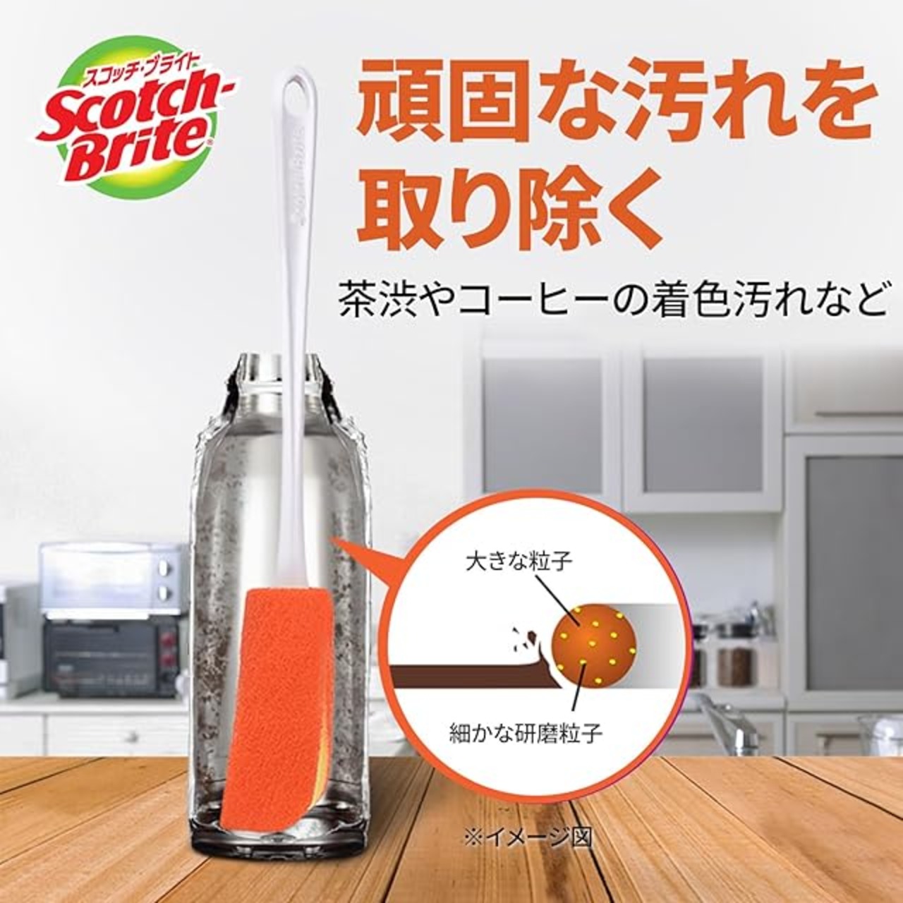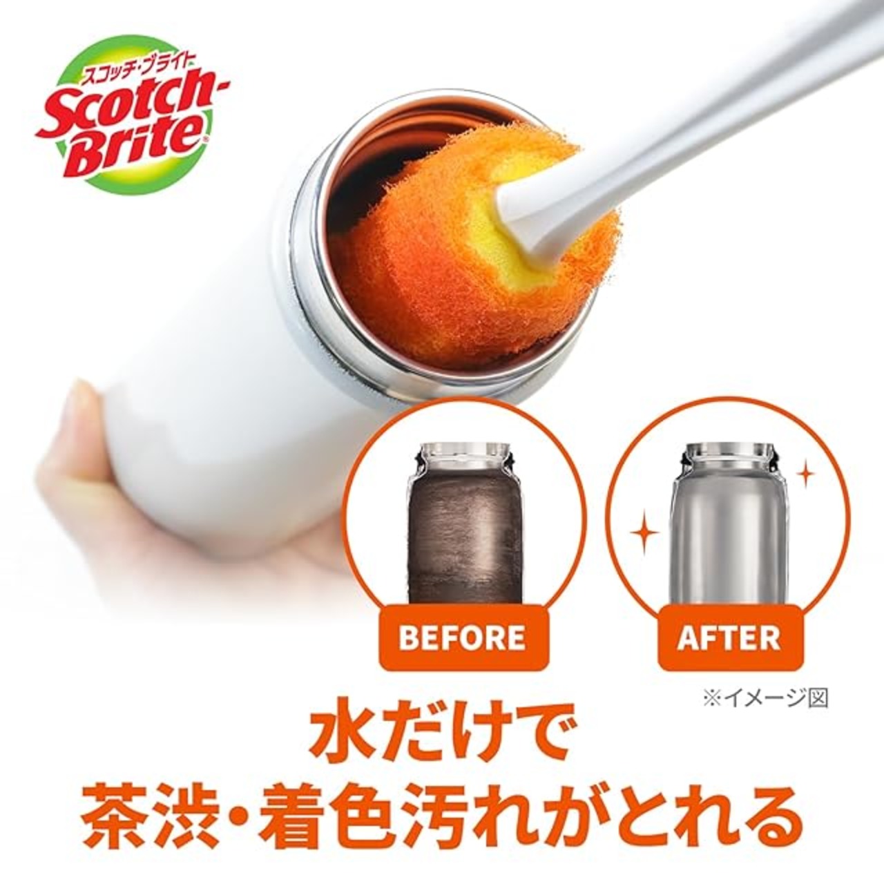 【水だけでも着色汚れを落とせるボトル洗い!】ハイブリッド研磨粒子で、ボトルについたしぶとい茶渋・コーヒーの着色汚れが水だけで落とせます。