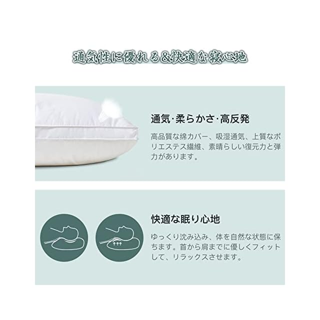 【立体構造】柔らかさと高反発性を兼ね備えた構造であり、ボリューム感よく、羽毛のように叩けばふわーっと飛 び散る性質をもっています。適度な復元力と弾力があり、しっかりと頭を支え、お好きな寝姿でぐっすり眠れます。
