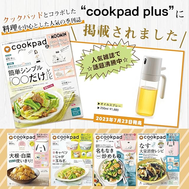 【使いやすさ】ワンプッシュで簡単に均一なオイルコーティングが可能。握りやすいボトルデザインにより、調理時の手間を大幅に軽減します。