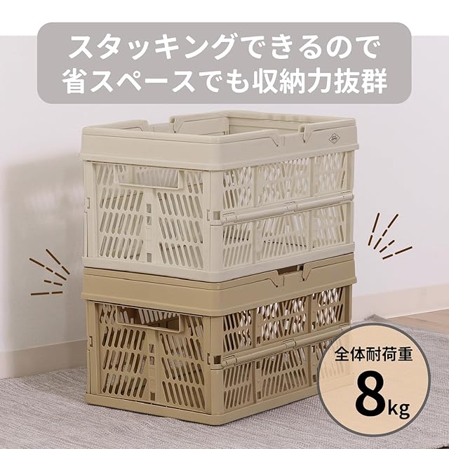 不二貿易 折りたたみ コンテナ かご 幅45×奥行31.5×高さ25㎝ ホワイト 取っ手付き 持ち運び簡単 内容量26L Lサイズ 86448