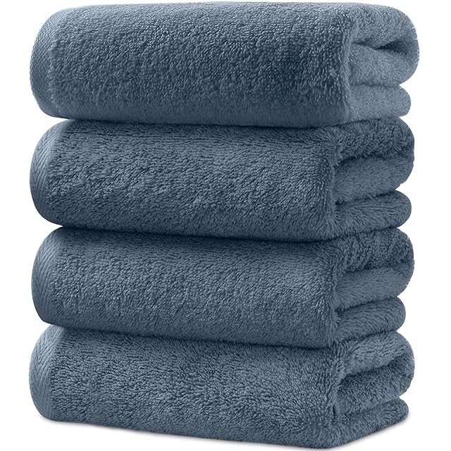 AYO バスタオル 4枚セット スモークブルー ホテル仕様 ふかふか 綿100% 高吸水 耐久性 無地 毛羽落ち少ない ギフト