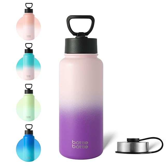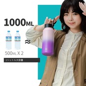 BOTTLE BOTTLE 水筒 1000ml ステンレス ウォーターボトル 女の子 直飲み ストロー付き 二重構造 保温保冷 真空断熱 持ち運び アウトドア パープル