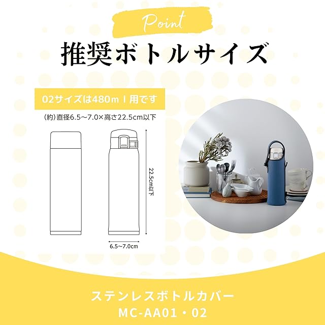 象印マホービン 水筒カバー Mサイズ(480ml用)持ち方3WAY ストレッチ素材 洗濯機洗いOK ステンレスボトルカバー ブルー MC-AA02-AA