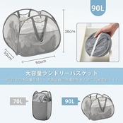 【大容量】90L以上の大容量で、サイズは長さ50cm×幅50cm×高さ38cmと、1週間分の洗濯物を十分に収納できます。また、便利なサイドポケットもあり、洗剤やタオル、靴下などのアイテムをすっきりと整理できます。