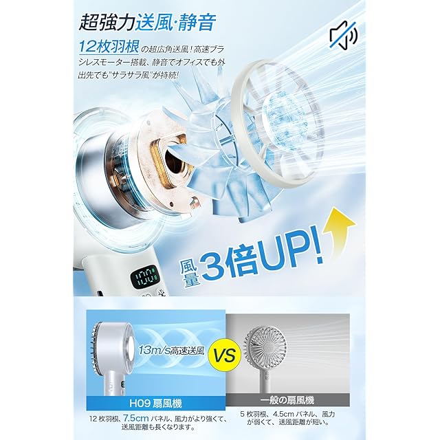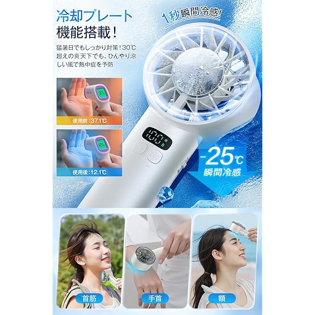 携帯扇風機 ハンディファン 【2025年モデル & -25℃瞬間冷却】 冷感プレート 手持ち扇風機 ミニファン 12枚羽根 6000mAh大容量 軽量 強力 静音 1~100無階段風量 USB-C充電式 卓上扇風機 小型 ポータブル 冷却 ストラップ付き LEDディスプレイ 熱中症対策 アウトドア/スポーツ観戦/オフィス/夏祭りなどに適用 ギフト (オフホワイト)