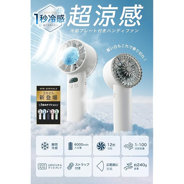 ハンディファン 冷感プレート 【2025年夏新登場 -25℃瞬間冷却】携帯扇風機 6000mAh大容量 手持ち扇風機 冷却ファン 卓上 usb充電式 ミニファン クーラー 100無階段風量調節 静音 強力 軽量 大風量 ストラップ付き LEDディスプレイ 熱中症対策 スポーツ観戦/オフィス/アウトドアなどに適用 (オフホワイト)