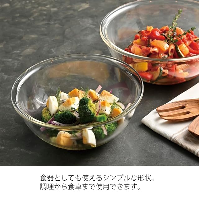 耐熱ガラスは日本製なので、供給も安定し品質も安全な耐熱ガラスのボウルです。調理以外にも食器として使えます。