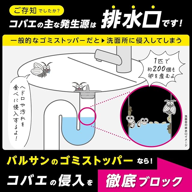 コバエの主な発生源は排水口です!