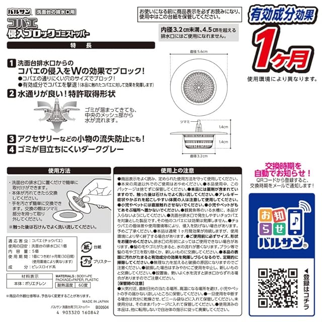 レック バルサン コバエ 侵入ブロック 洗面台 排水口用 ゴミストッパー 5個入 有効成分練りこみタイプ
