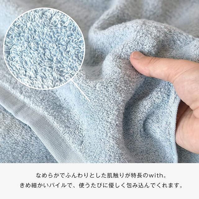 【使うたびにやわらかく】お洗濯することでパイルとパイルの間に空気が入り込み、ふわっと軽やかな手触りに。お風呂上りや手を拭いた瞬間にタオルの良さを感じてもらえるような肌触りに仕上げました。